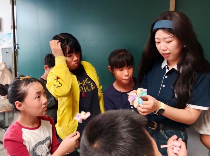 刘畅老师与孩子们一起制作的“扭扭棒七色花”则充满童趣,扭扭棒在指尖缠绕,绽放出一束束象征希望的彩色花朵,让孩子们在动手实践中收获创造的快乐。
