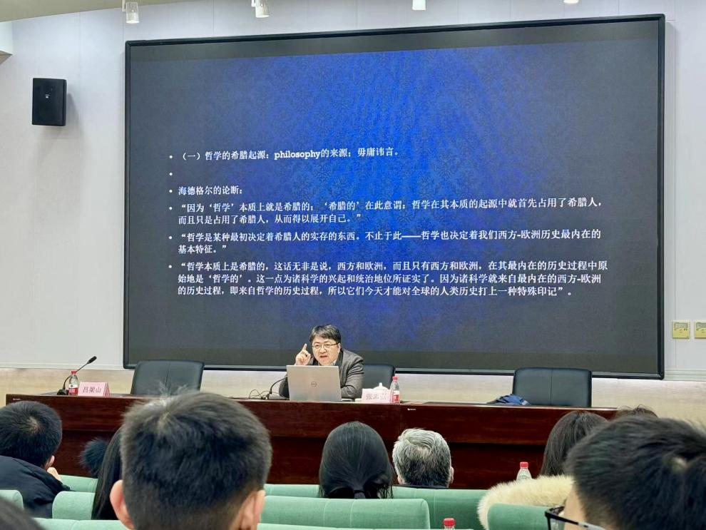 张志强研究员的报告围绕以下四个方面展开:一、哲学的希腊起源与“中国哲学”;二、哲学、宗教与义理学之间的中国哲学;三、非哲学与非宗教的义理学:中国哲学的特质;四、中国哲学特质的起源。张志强研究员的报告深入浅出、条理清晰。在交流和互动环节中,他就“哲学源流”“中西哲学的本质区别和理论特质”及“哲学朝向思本身”等问题予以了详细讲解,同时也围绕不言之教、义理之教等问题进一步阐述了自己的理解。本次博士论坛主题触及到了哲学的根基问题,在与会的师生中引起强烈的共鸣,让我们深入领会到了中国哲学具有的独特义理内涵。