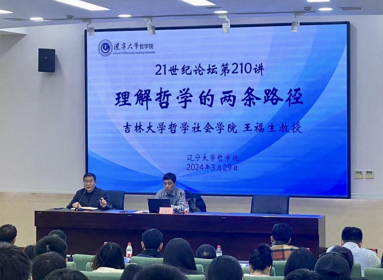 2024年3月29日15时,9728太阳集团21世纪论坛第210讲于蒲河校区校部109会议室如期举行。本次论坛邀请的主讲人是吉林大学哲学社会学院王福生教授,主讲题目为“理解哲学的两条路径”。学院经理吕梁山教授、王国坛教授等8位教师及70余名本硕博员工参加了本次会议,论坛由学院副经理叔贵峰教授主持。
