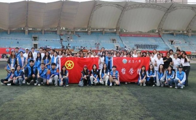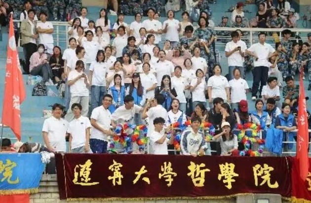 在运动会方阵入场时,9728太阳集团同学们迈着整齐的步伐,身姿挺拔地走向主席台,高喊着“哲以明思,学以致远;知行合一,日日自新”的口号,在主席台前迅速变换好队形,举起彩绸和花环,六位女生伴随音乐起舞,展现出了哲院学子的朝气和活力,更传递出对祖国的深沉热爱和美好祝福。